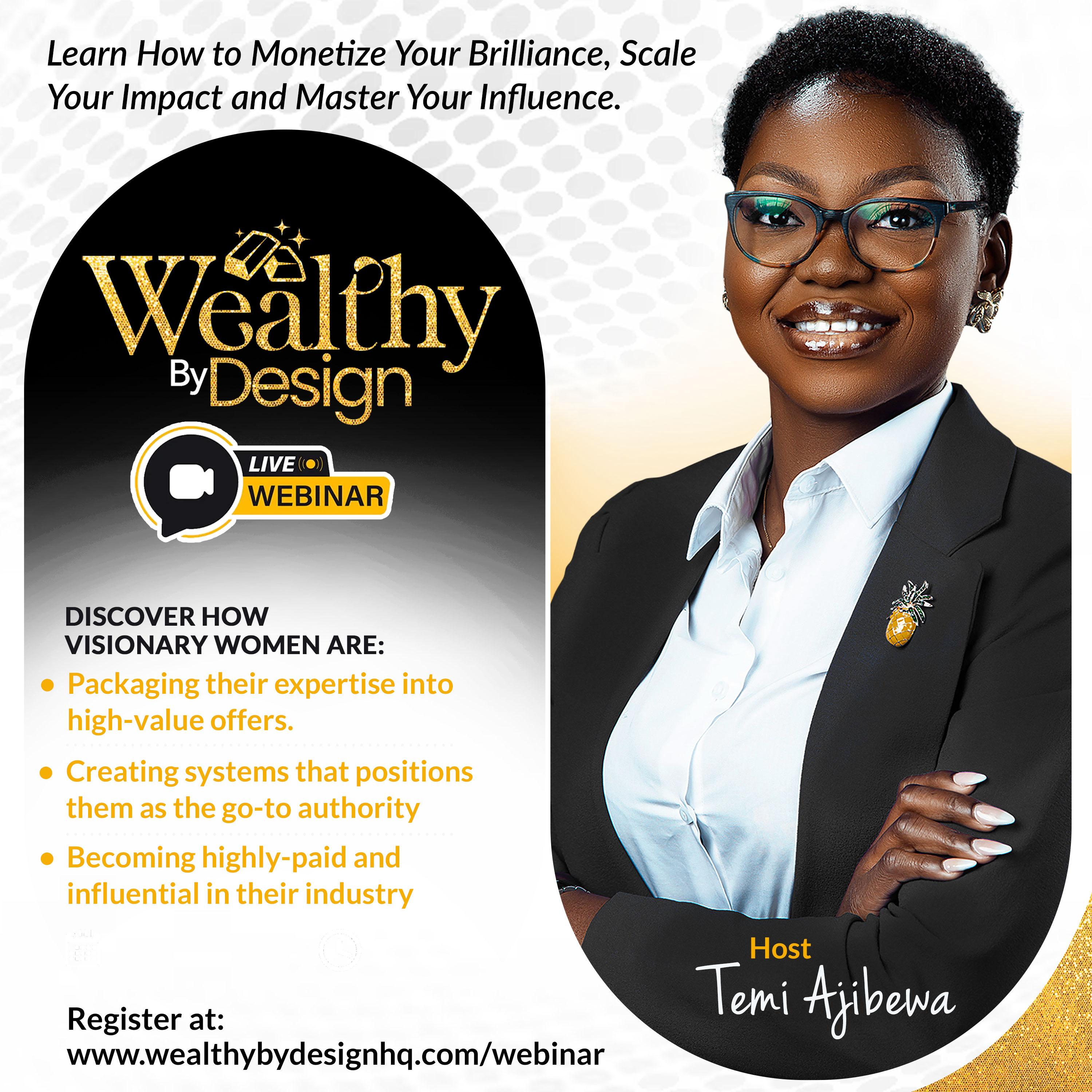 This is why I created the Wealthy By Design Webinar to help women serious about turning their expertise into sustainable wealth.